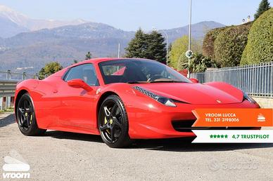 [tootto:69e8017282c2c] VROOM ACCELERA LA COMPRAVENDITA TRA PRIVATI Agenzia di intermediazione automobilistica. PER INFORMAZIONI il tuo assistente personale � Alessandro MAIL: lucca@vroomauto.it FERRARI 458 458 Spider DCT 2015-05-10 Benzina km 56000 MOTORE ottimo CARROZZERIA ottimo STATO INTERNI Ottimo GOMME rimanenza anteriori 80 / rimanenza posteriori 80 PREZZO RICHIESTO � 230000 con obbligo di finanziamento � 239000 senza finanziamento ACCESSORI: ABS, Airbag guida, Airbag laterali, Airbag passeggero, Ammortizzatori Magnaride (SCM2), Antifurto, ASR, Cambio sequenziale a 7 marce, Capote automatica reclinabile elettricamente, Cerchi in lega da 20, Chiave con transponder, Chiusura centralizzata, ... Per visualizzare la lista completa degli accessori guarda l�annuncio sul nostro sito o mettiti in contatto con il referente Vroom. Le vetture presenti sul portale sono circolanti ad uso degli attuali proprietari, � possibile visionarle esclusivamente SU APPUNTAMENTO. Decliniamo ogni responsabilit� per involontarie incongruenze nella descrizione dell�annuncio, che quindi non rappresentano un impegno contrattuale. Offriamo un servizio di navetta dall�aeroporto / stazione o porto pi� vicino. VROOM offre la possibilit� di ottenere: NOLEGGIO A LUNGO TERMINE, ASSISTENZA E GARANZIA GUASTI 12/24/36 mesi, ASSICURAZIONI RC AUTO, FINANZIAMENTI A TASSI AGEVOLATI ANCHE SULL'INTERO IMPORTO CONSEGNA A DOMICILIO DELLA VETTURA. TUTTE LE NOSTRE AUTO VENGONO SOTTOPOSTE A UNO STATO D'USO PRIMA DELLA VENDITA. Il passaggio di propriet� � a carico dell'acquirente. Se interessato a vendere la tua auto o moto contattaci, possiamo trovare velocemente un compratore. SIAMO ALLA RICERCA DI NUOVI AFFILIATI IN FRANCHISING IN TUTTA ITALIA E EUROPA SE VUOI DIVENTARE IL Mr. VROOM della tua zona, contattaci.