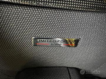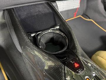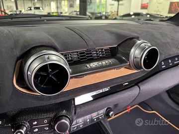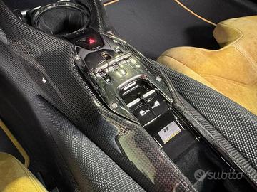 Rivestimenti interni, inclusi: inserto cruscotto in similpelle scamosciata, inserto pannello porta in fibra di carbonio, inserto console in similpelle scamosciata, inserti interni in fibra di carbonio e cruscotto rivestito in similpelle scamosciata Alcantara