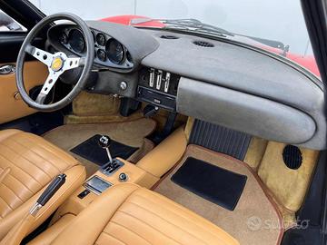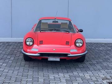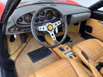 AUTOVETTURA ITALIANA, CONSEGNATA NEL GENNAIO 1972 DALLA CONCESSIONARIA CREPALDI DI MILANO, MATCHING NUMBER. ATTULAMENTE IN COLORAZIONE ROSSO DINO, MA ORIGINARIAMENTE CONSEGNATA NELLA COMBINAZIONE MARRONE DINO MET - INTERNO BEIGE.