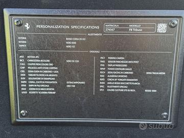 DEK:[10126947] IN PRONTA CONSEGNA! -ROSSO CORSA - TETTO NERO -UNICOPROPRIETARIO -UFFICIALE ITALIANA -TAGLIANDI REGOLARI(GRATUITI FINO AL 2029) -ESEGUITA ESTENSIONE GARANZIA UFFICIALE FINO A GENNAIO 2027 -BOLLO E SUPERBOLLO PAGATI FINO AL 31/12/2025 OPTIONAL (€ 49.227) : -TETTO NERO -SCUDETTI LATERALI -PINZE FRENO ORO -CERCHI FORGIATI DIAMANTATI -ALLESTIMENTO ZONA GUIDA IN CARBONIO CON LED AL VOLANTE -SOLLEVATORE ANTERIORE -CAVALLINI SUI POGGIATESTA -SISTEMA AFS PROIETTORI -SEDILI IN CARBONIO -ALZASEDILE SPORTIVO -DISPLAY PASSEGGERO -TARGA DEDICA (APPOSITAMENTE LASCIATA IN BIANCO) -CODINI SCARICO CERAMICI NERI -PELLICOLA FERRARI -ANTERIORE(PARAURTI,COFANO, PARAFANGHI,SPECCHIETTI,BANCARDI) -SENSORI PARCHEGGIO ANT. E POST. -TELECAMERA POSTERIORE -BOCCHETTE CON ANELLO ROSSO -FONDO CONTAGIRI GIALLO