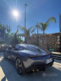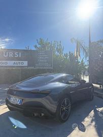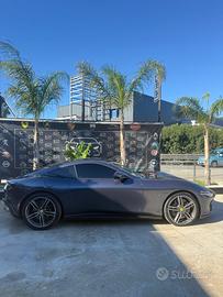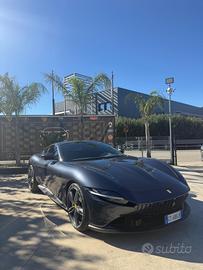Ferrari Roma 3.9 V8 - L'eleganza incontra la potenzaUn'auto che non si guida soltanto: si vive. La Ferrari Roma rappresenta l'essenza del Gran Turismo italiano, un connubio perfetto di bellezza senza tempo, tecnologia d'avanguardia e prestazioni straordinarie. Ogni linea, ogni dettaglio, ogni emozione è pura arte di Maranello. [?] Prestazioni e meccanicaSotto il lungo cofano si cela un V8 biturbo da 3.9 litri, capace di erogare 620 CV e 760 Nm di coppia, abbinato al cambio automatico a doppia frizione a 8 rapporti, lo stesso derivato dalla SF90. Accelerazione 0-100 km/h in 3,4 secondi, con una velocità massima che supera 320 km/h. Una spinta continua e fluida, accompagnata da un sound inconfondibile e raffinato, regolato dalle valvole attive dello scarico sportivo. Design e comfortLa Roma è eleganza pura. Il suo design pulito e scultoreo, ispirato alle Ferrari degli anni '60, nasconde una tecnologia da supercar moderna. L'abitacolo è un salotto sportivo, pensato per il piacere di guida e per sorprendere chiunque salga a bordo. Principali caratteristiche: Accensione touch e sistema keyless Doppio schermo digitale: strumentazione completamente configurabile e display touch dedicato al passeggero, per gestire musica, navigazione e performance in tempo reale Sedili sportivi elettrici e riscaldabili, con funzione automatica di avanzamento per l'accesso ai posti posteriori Climatizzatore automatico bi-zona Volante multifunzione in fibra di carbonio con LED di cambiata integrati Drive Mode Selector "Manettino" con modalità Wet, Comfort, Sport, Race, ESC-Off, per un'esperienza di guida su misura Sospensioni magnetoreologiche adattive (SCM-E Frs) Telecamera e sensori di parcheggio anteriori e posteriori Sistema di infotainment con interfaccia touch intuitiva Apple CarPlay / Android Auto Impianto frenante carboceramico (CCM) Cerchi in lega da 20" forgiati Pacchetto completo in fibra di carbonio (esterni e interni) Cuciture a cont