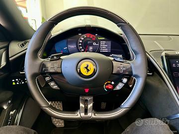 FERRARI ROMA SPIDER SOLO 6000KM TENUTA DA AMATORE, TAGLIANDI CERTIFICATI! **AUTO VISIBILE SU APPUNTAMENTO PRESSO LA SEDE DI FONTE NUOVA** **GARANZIE E FINANZIAMENTI IN SEDE** Sebbene sulla carta possa sembrare semplicemente la versione scoperta della coupé Roma, la variante Spider ha ricevuto alcuni upgrade meccanici e tecnici, mantenendo la doppia anima della sua controparte con il tetto rigido. La Roma Spider segna inoltre il ritorno di Ferrari all’utilizzo di un tetto in tela integrale: questa soluzione così elegante e un po’ old-school si sposa bene con lo stile della Roma, ispirato alle Gran Turismo degli anni ’60, e che unito ad un motore anteriore non si vedeva in casa Ferrari da oltre 50 anni. Ha l’indole da GT da lunghi viaggi e un carattere da vera sportiva, senza alcun aiutino ibrido. Bastano 13,5 secondi per abbassare la capote e voilà ecco che si viaggia con il vento tra i capelli e con la bellissima colonna sonora del V8 senza filtri. La Ferrari Roma Spider va molto forte e quello che stupisce è la sua grande fruibilità: quando si va piano in modalità Comfort è silenziosa e confortevole ma quando si alza il ritmo, la Ferrari Roma Spider diverte tanto quanto altri modelli del Cavallino. Nonostante sia una spider elegante qui ci sono tutte le modalità di guida comprese quelle più “cattive”, che permettono di “giocare” con tutti i cavalli a disposizione. ALCUNI OPTIONAL PRESENTI: CAPOTE IN TELA VIRTUAL COCKPIT NAVIGATORE APPLE CAR PLAY E ANDROID AUTO CRUISE CONTROL SENSORI ANT E POST CAMERA 360 MANETTINO CON MODALITA' DI GUIDA VOLANTE IN PELLE E CARBONIO RISCALDABILE CON TASTI TOUCH E LED SEDILI A GUISCIO IN PELLE E ALCANTARA ELETTRICI RISCALDABILI E VENTILATI CRUSCOTTO IN ALCANTARA CON SCHERMO LCD FARI FUL LED MATRIX CAMBIO AUTOMATICO AD H CON PADDLE IMPIANTO AUDIO JBL CERCHI IN LEGA DA 20 CON PINZE BREMBO GIALLE E DISCHI CARBOCERAMICI SEGUICI SU INSTAGRAM PER RIMANERE SEMPRE AGGIORNATO SUI VEICOLI NUOVI E...