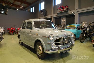 La FIAT1100 103 DEL 1959 che propone Biga Garage è un modello restaurato conmascherina frontale appartenente ad un altro modello, quello della Fiat 1100TV. Trazione posteriore, quattro cilindri, trasmissione manuale è una BerlinaTipo B. Più rifinita e con più accessori del Tipo A. Cilindrata 1090 targataLucca, iscritta ASI, con i suoi 77.700 chilometri percorsi può solo essereconsiderata una Signora Auto. Ha viaggiato e con le sue caratteristiche si èfatta notare sicuramente. Il suo colore esterno celeste e i particolari"divanetti" dello stesso delicato colore la rendono un gioiellinodell'Automobilismo tutto italiano. E' Made in Italy... quindi nient'altro dadire!