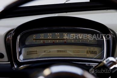 La vettura, ricondizionata con cura dall'ex proprietario, si presenta con una raffinata carrozzeria bicolore beige-azzurro, interni in tessuto grigio e un motore da 1.089cc. E' dotata di cambio al volante a 4 marce e impreziosita da 4 eleganti gomme con fascia bianca.