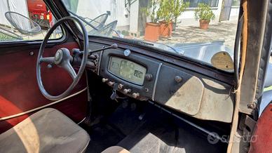 Veicolo conservato in buone condizioni generali, alcuni lievi lavori di estetica da effettuare, sedili conservati, motore 1090 cc, buona meccanica e funzionante, trasfomato in autocarro cassone a sponde nel 1963 con portata 400 Kg, targhe nere originali e documenti in regola