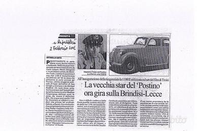 PERIZIA DELL'ESPERTO PRIVACAR: Cari amici, quella che presentiamo oggi non è unauto qualunque ma una vera e propria Auto Attrice. Siamo al cospetto di una delle sette (dico 7) Fiat 1.1 E cd. Musone Carrozzata da Zarattini ancora in circolazione. Nella sua trentennale carriera cinematografica questa vettura ha girato set importanti; è stata diretta da Carlo Lizzani, da Mauro Bolognini e, in un intenso cameo, da Michael Radford e da Massimo Troisi nel suo ultimo film Il Postino. Nel 1974 ha ospitato Rod Steiger che interpretava il Duce nel film Mussolini ultimo atto e lanno successivo da Claudia Cardinale lanarchica del film del compianto Massimo Troisi e poi dalla bella Claudia Cardinale nel film Libera di Bolognini. Una icona del 1948 in ottimo stato di conservazione, totalmente originale e perfettamente funzionante in tutte le sue parti. E innegabile che questa vettura rappresenta oggi un chiaro ed evidente investimento economico ad un prezzo abbordabilissimo. E poi passare inosservati è pressoché impossibile: cose che capitano quando si passeggia con unAttrice