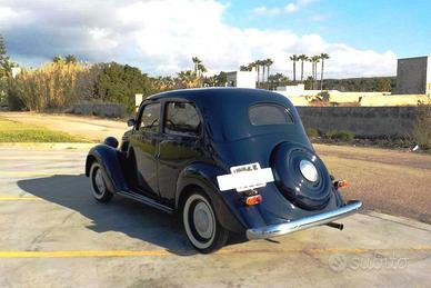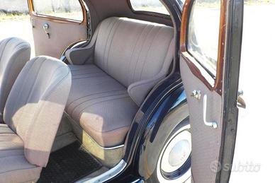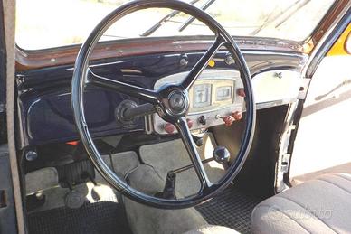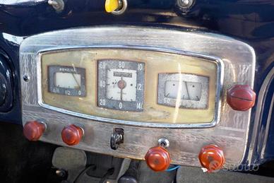DATI TECNICI: Targa originale nera Roma 113194, Immatricolazione 02/1948, Telaio 1100300827, Iscrizione ASI con Certificato di Rilevanza Storica e Collezionistica al n. 110682 del 16/07/2013, Motore: 1089cc -Tipo 103000 35cv/26kw, Cambio: manuale 4 + RM, Freni: idraulici- soccorso/stazionamento meccanici, Lunghezza: 4100 mm Larghezza 1512 mm, Posti totali: 4