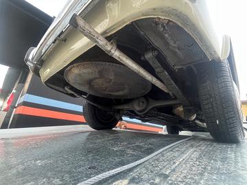 E stata ferma diversi anni, e stata sostituira pompa benzina, pompa freni , pompa acqua e radiatore. Ha le pinze dei freni da revisionate, quindi attualmente non frena. Di carrozzeria e sana e ottima, ha solo qualche “colatura di ruggine” proveniente dalle modanature laterali come si vede in foto.