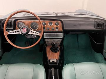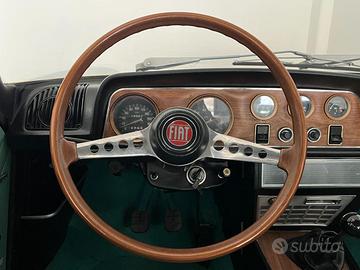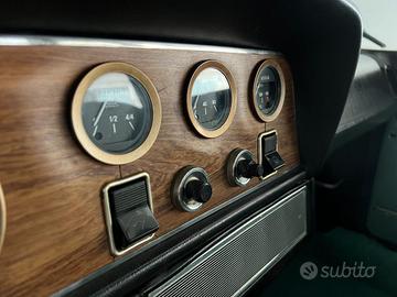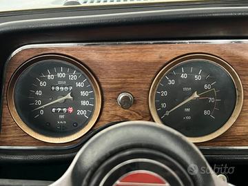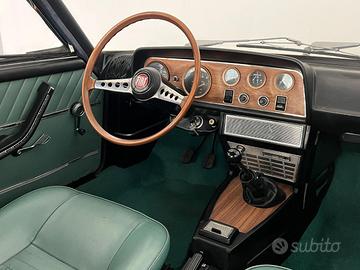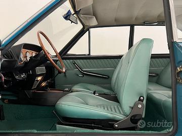 La vettura si presenta con carrozzeria in color azzurro metallizzato e interni in vinile verde chiaro, conservati e fedeli all’originale. Dettagli curati, volante in legno a tre razze, inserti effetto radica e strumentazione Veglia Borletti completano un abitacolo dal fascino inconfondibile.