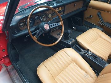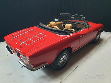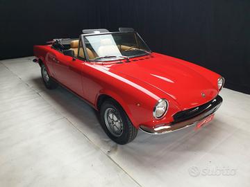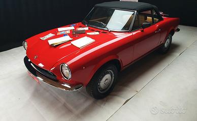 La vettura che proponiamo è un oggetto che presenta tutto quello che un appassionato di auto storiche ed ancor più in una Fiat cabrio ricerca in una vettura, soprattutto in questa rarissima prima serie fantastica. La sua linea evoca eleganza e spensieratezza, è talmente bella che ovunque si vada con lei, si viene accompagnati da sorrisi e sguardi di ammirazione. Questa Fiat è stata pensata da Pininfarina espressamente per godersi la guida a cielo aperto, la stessa è completa di certificazione ASI e CRS certificato delle caratteristiche tecniche del veicolo. Bella Da vedere. Bella da guidare. Uno stile sportivo insieme ad un concetto dinamico e giovane del comfort, oggi la Fiat 124 Sport Spider rappresenta un’auto da sogno con solo il cielo a farle da tetto, viaggiare con la capote aperta in una splendida giornata di primavera regala gioia in auto e nella vita di tutti i giorni, un’auto che va gustata e vissuta! Fiat 124 Sport Spider una leggenda da ieri a oggi! Questa fantastica cabrio regala emozioni anche agli occhi, vivacità allo stato puro donata da questo splendido “Rosso Fiat” originale dalla nascita, che, insieme agli inserti cromati, definiscono pienamente ogni singola linea dell’auto; paraurti, tergicristalli, ogni elemento fa risaltare l’inconfondibile stile della Fiat 124 Sport Spider. Internamente i sedili in pelle di colore beige nuovi di ottima fattura si sposano perfettamente con l’abitacolo; plancia pulita ed essenziale arricchita da un esclusivo autoradio, l’iconico volante Nardi unico nella sua bellezza.. anche qui gli inserti cromati non mancano, aiutano a definire gli interni e donano un tocco di eleganza. Praticamente un auto in splendide condizioni che gode di tutte le agevolazioni fiscali e assicurative vigenti per una storica certificata come la nostra, ed è corredata di doppie chiavi e accessori dell’epoca, 4 posti fantastici, soft top originale nuovo ed a corredo copri cappotta beige in tinta con gli interni, revisione e tagliando regolar
