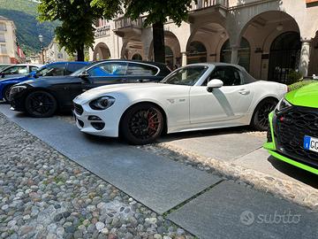 Fiat 124 Spider Lusso(impianto Bose, fanali anteriori a Led ed altre chicce) con vari upgrade (impianto maggiorato all'anteriore Tarox, e dischi e pastiglie post Tarox con tubi in treccia, assetto Bilstein, mappata a 190cv, intercooler in alluminio con tubazioni in silicone, barra duomi Cusco, scarico rivisto, e differenziale autobloccante dell'abarth.