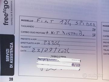 Fiat 124 spider allestimento Lusso, 1.4 Turbo 140Cv, sono il secondo proprietario, il precedente ha 70anni; Tenuta maniacalmente, cambio manuale, Distribuzione completa e tagliando effettuati a Km 23,600 (documentabili) completa di libretto tagliandi e doppia chiave originale.