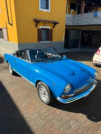Vendo splendida fiat 124 spider 1608cc bs1 (110cv), kilometri 105.000, perfettamente funzionante, conservata, targhe nere originali d’epoca, iscritta ASI e CRS. Gomme nuove, appena revisionata, tagliandata olio e filtri. Carrozzeria perfetta, vernice blu francia 426, interni neri, moquette nuove, tappetti nuovi. 4 cerchi in magnesio cromodora. Appena sostituiti 4 ammortizzatori sachs, e paraoli differenziale e vaschette liquido freni. Revisionato impianto frenante. Bolante sportivo nardi in legno, poggiatesta. Manuali originali dell’epoca. Cinghie distribuzione e servizi fatti a 93.000km. Capote nuova e copri capote. Telo fiat in panno. Macchina pronta uso, sempre in garage privato, subito godibile, nessun lavoro da fare. Disponibile a visione.. occasione imperdibile e unica.