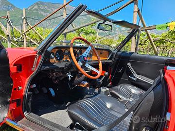 Vendo per cambio progetto una stupenda 124 Sport Spider iscritta ASI immatricolata giugno 1972. La vettura è rosso fiat 152, dotata del motore da 1608 cc e doppio carburatore doppio corpo, non la versione a singolo. Nel corso degli ultimi anni sono stati fatti vari lavori di manutenzione ordinaria e straordinaria, come tagliandi completi, olio differenziale, kit distribuzione (cinghia), pasticche freni... L'auto è revisionata e pronta all'uso. Usata per divertimento e per raduni, è molto godibile e vivace anche oggi essendo dotata di 5 marce e freni a disco. La vettura monta stupendo volante a calice Helios originale dell'epoca, ma fornisco anche quello originale Fiat. Monta rarissimi cerchi Cromodora CD30 anch'essi originali dell'epoca (NO riproduzioni). È dotata sia di targa originale di prima immatricolazione (rarità ormai) sia del suo libretto a pagine originale (ancora più raro) con tutta la storia del veicolo incluse le revisioni degli anni 80. Carrozzeria priva di ruggine e capote in ottimo stato, dotata di tonneau cover originale. Ho montato il frangivento per il comfort, ma esso è completamente rimovibile senza lasciare alcuna traccia e compatibile a capote chiusa, fari aggiuntivi CARELLO montati con staffe originali, senza forature sul paraurti.