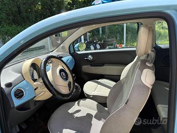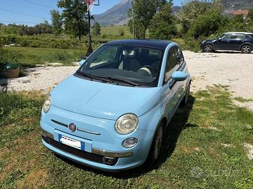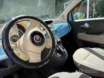 Vendo la mia Fiat 500 nella tonalità azzurro pastello con tetto panoramico in vetro fisso, immatricolata febbraio 2011. Allestimento Lounge, il top di gamma dell'epoca: cerchi in lega da 14", interni bicolore (avorio/grigio), comandi al volante con bluetooth/vivavoce, climatizzatore, vetri elettrici, sensori parcheggio e radio originale Fiat con USB. Sotto il cofano il celebre bicilindrico TwinAir turbo 0.9 da 85 CV: brillante in città e sufficientemente vivace fuori, con consumi reali intorno ai 18-20 km/l e classe Euro 5. Cambio manuale a 5 marce. Auto unica nel suo genere per stile, dimensioni compatte (3,55 m) e parcheggi facili. Sempre tagliandata, gomme in buono stato. Disponibile a mostrarla e per prova su strada.
