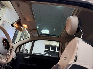 airbag ginocchia lato guida, airbag lato guida / lato passeggero airbag passeggero disinseribile, Isofix per sedile bambini su sedile post., alzacristalli elettr. ant., chiusura centralizzata autom., computer di bordo, contagiri, Electronic Stability Program (ESP / ESC) regolazione antislittamento trazione, assistenza partenza in salita, regolatore antibloccaggio in decelerazione motore, Elettrico servosterzo Dual-Drive, funzione collaterale luci autom., griglia anteriore crom., immobilizzatore (elettronico), impianto limitatore velocità, impianto regolazione velocità, UConnect (Touchscreen 5"), radio con lettore CD e MP3, interfaccia USB, luce guida diurna, maniglie porta est. crom., Memoria-Posizione per sedile passeggero, pacchetto Cromo Modanature finestrino crom., Terminale scarico crom., poggiatesta post., presa elettrica (presa 12V) in plancia cruscotto, retrovisore est. tinta carrozzeria, servofreno elettrico, sistema airbag testa ant. e post., sistema antibloccaggio (ABS), servofreno, sistema controllo pressione pneumatici, tetto panoramico (vetro), volante con multifunzione per comandi audio comandi radio, cerchi in lega 6,5x16 (10 razze), climatizzatore automatico, Style fendinebbia, modanature lat. vernic. incl. emblema 500, retrovisore est. regolab. elettr. e riscaldab., sedile ant. sx regolabile in altezza, verniciatura pastello (colore speciale)