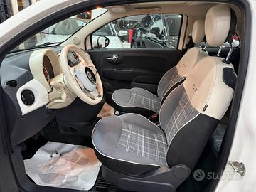 airbag ginocchia lato guida, airbag lato guida / lato passeggero airbag passeggero disinseribile, Isofix per sedile bambini su sedile post., alzacristalli elettr. ant., chiusura centralizzata autom., computer di bordo, contagiri, Electronic Stability Program (ESP / ESC) regolazione antislittamento trazione, assistenza partenza in salita, regolatore antibloccaggio in decelerazione motore, Elettrico servosterzo Dual-Drive, funzione collaterale luci autom., griglia anteriore crom., immobilizzatore (elettronico), impianto limitatore velocità, impianto regolazione velocità, UConnect (Touchscreen 5"), radio con lettore CD e MP3, interfaccia USB, luce guida diurna, maniglie porta est. crom., Memoria-Posizione per sedile passeggero, pacchetto Cromo Modanature finestrino crom., Terminale scarico crom., poggiatesta post., presa elettrica (presa 12V) in plancia cruscotto, retrovisore est. tinta carrozzeria, servofreno elettrico, sistema airbag testa ant. e post., sistema antibloccaggio (ABS), servofreno, sistema controllo pressione pneumatici, tetto panoramico (vetro), volante con multifunzione per comandi audio comandi radio, cerchi in lega 6,5x16 (10 razze), climatizzatore automatico, Style fendinebbia, modanature lat. vernic. incl. emblema 500, retrovisore est. regolab. elettr. e riscaldab., sedile ant. sx regolabile in altezza, verniciatura pastello (colore speciale)