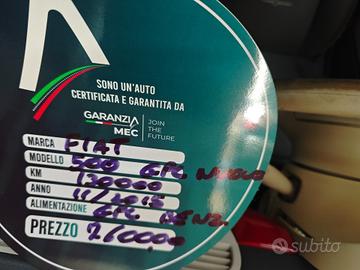 Auto proveniente dal nord Italia Fiat 500 GPL nuovo gas da istallare Ma si può comprare anche senza GPL dal prezzo viene ridotto il costo 1.2 cc 8v Km 130000 Cerchio in lega Tutta tagliandata Doppie chiavi Enzo