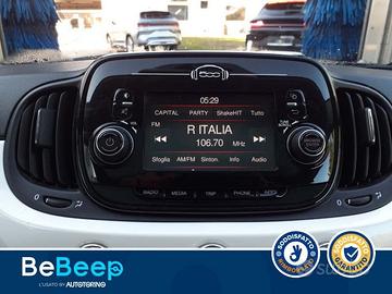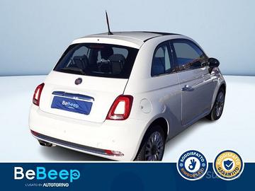 La vettura è completa nella dotazione optional di Cambio Manuale, Cerchi in Lega da 15"" ARGENTO LUCIDO (con pneu 185/55 non catenabili) 74B, Climatizzatore manuale con filtro antipolline, Fari alogeni, Kit cromo (corn. raschiav., inserto paraurti post.,term. di scarico), Libretto istruzioni in italiano, RETROVISORI ESTERNI IN TINTA CARROZZERIA, Sensore di parcheggio posteriore, Servizi LIVE Uconnect, Targhetta assistenza CIAO FIAT, Tetto fisso in cristallo, Uconnect TM 5"" Radio Live Touchscreen, Bluetooth, USB/AUX-IN