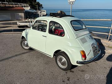 Vendo splendida Fiat 500 110 F Berlina del 1968 in ottime condizioni generali. restaurata internamente con grande cura, presenta interni rossi perfettamente abbinati al colore esterno azzurro, per un look classico e intramontabile. L'auto è completamente funzionante, regolarmente marciante e pronta all'uso. Documenti in regola, targa originale. Perfetta sia per amatori che per chi cerca un'auto storica iconica, da godersi su strada e da esporre. Si trova a Maratea (pz) Prezzo 6500 trattabili. 3895110774