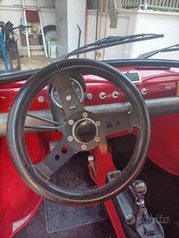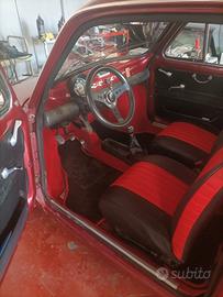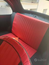 Interni rifatti a nuovo in rosso/nero, volante sportivo a 3 razze, cerchi in lega stile d’epoca. Carrozzeria lucida; normali segni sulle cromature coerenti con l’età.
