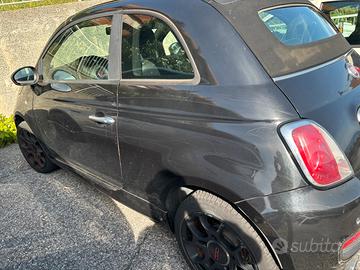 Fiat 500 cabrio 1200 cc nera del 2015 con capotte elettrica da mettere a posto, Climatizzatore automatico, Tasca retroschienale sedile passeggero,, Sedile guida regolabile in altezza, Sedile posteriore sdoppiato 50/50 con appoggiatesta regolabili in altezza con attacchi isofix, Volante in pelle con comandi radio, Volante regolabile in altezza, Alzacristalli elettrici e chiusura centralizzata, Maniglia appiglio lato passeggero, Tappo combustibile con chiave, Kit di riparazione pneumatici Fix&Go, Telecomando apertura/chiusura porte, Autoradio CD + MP3 con n.4 altoparlanti, n.2 tweeter, Cerchi in lega da 15'' Lounge con pneum. 185/55 R15 non catenabili, Presa Corrente 12V Sist vivavoce Blu&Me con tecn. Bluetooth, riconosc. vocale e lettore file audio digit con porta USB, Paraurti in colore vettura, Retrovisori esterni elettrici con sbrinamento in colore vettura (uno rotto), Kit cromo (inserti gurnizioni vetri cromati, scarico cromato, inserti su paraurti ant. e post. cromati, corona leva cambio cromata), Airbag passeggero dual stage, Airbag guidatore dual stage, Airbag laterali, Windows bag, Servosterzo elettrico tipo Dualdrive, SENSORE PRESSIONE PNEUMATICI (TPMS), ABS + EBD, Airbag ginocchia, Sensore di parcheggio, cerchi in lega, interni ottimi, esterni con molti segni di usura, motore perfetto, km 62000 reali, no perditempo, no sognatori.