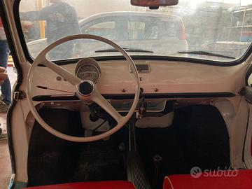 Fiat 500 immatricolata il 29 ottobre 1963, porte controvento. carrozzeria in ottimo stato, completamente restaurata. interni in pelle rossa nuovi, ultima revisione nel 6 novembre 2003. l’auto funziona perfettamente, tenuta in garage