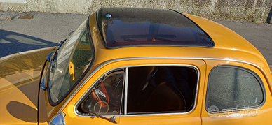 Fiat 500 giallo positano, personalizzata con motore preparato, cambio revisionato 5 marcia e 3e4 corte. Accensione elettronica , assetto e barra stabilizzatrice posteriore. Cerchi ricostruiti con pneumatici nuovi tubless 145 a libretto. Freni a disco anteriori , batteria nuova , interni in ottime condizioni, carrozzeria ristrutturata , mai pioggia. Lavori di meccanica eseguiti da noto preparatore genovese. Certificato rilevanza storica.