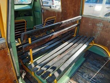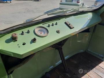 ESEMPLARE NUMERO 024 SU 50 PRODOTTE DI FIAT 500 DRAISINA MOTOCARRELLO,ANNI 60,COLORE GIALLO-ARANCIO,COMPLETAMENTE RESTAURATA DI CARROZZERIA,INTERNAMENTE MONTA ANCORA LE PANCHE DI SEDUTA ORIGINALI PER GLI OCCUPANTI E PAVIMENTO IN LEGNO CHE ABBIAMO PROVVEDUTO A RESTAURARE,COSTRUITA IN PICCOLA SERIE NEGLI ANNI SESSANTA DESTINATA ALLA MOVIMENTAZIONE DI PERSONALE SU ROTAIE. E' UN VEICOLO A DUE ASSI CON CARROZZERIA BIFRONTE E DOPPIA CABINA DI GUIDA DERIVATA DAL FURGONE FIAT 850T,MONTA UN MOTORE A SOGLIOLA BICILINDRICO FIAT 499,50 CHE EQUIPAGGIAVA LA FIAT 500 GIARDINIERA E LA AUTOBIANCHI BIANCHINA PANORAMICA.
