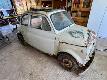 Vendo Fiat 500 modello F degli anni '60 per abbandono del progetto di restauro, purtroppo non ho più tempo. L'auto è sprovvista di documenti e targhe, viene venduta con formula "visto e piaciuto" come base per restauro o come auto per przzi di ricambi. Stato del veicolo: • Meccanica: Motore 110F originale presente (attualmente bloccato/fermo da tempo per inutilizzo). Cambio funzionante. • Carrozzeria: Scocca con ruggine diffusa, in particolare i fondi sono da sostituire totalmente. Ideale per recupero lamierati sani o per chi sa fare lattoneria pesante. • Interni: Sedili anteriori e posteriori presenti, cruscotto presente. • Extra: Inclusi vari pezzi smontati visibili in foto (serbatoio, portiere, ecc.). Ottimi come fonte di ricambi originali dell'epoca. Ritiro a carico dell'acquirente. Per qualsiasi altra informazione o foto aggiuntive resto a disposizione. Prezzo: 500€ trattabili.