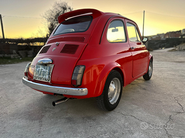 Fiat 500 d'epoca, 110 F, completamente restaurata. Rifatta tutta la vernice e i fondi (no ruggine precedente), interni rifatti nuovi, stereo due din e piccolo impianto audio.