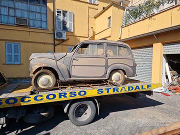 fiat 500 Giardinetta Belvedere vendo per mancanza di spazio cambio progetto. La vettura non si vende a pezzi ma intera .Motore smontato completo.incidentata lato dx sul parafango Sempre garage solo impolverata. Ottima per pezzi di ricambio. No ruggine.Tettino originale ed anche quello estivo in tela originale. 600 euro trattabili.