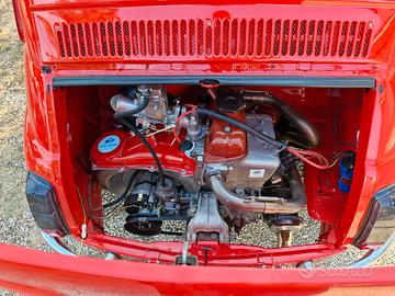fiat 500 epoca 1970 , restaurato completamente sia di carrozzeria che di motore. la carrozzeria è stata rivista totalmente tutte la parti rovinate tolte e risaldate, è stata carteggiata in ogni punto per togliere la ruggine che si era formata ed infine è stata riverniciata rossa ferrari. Gli interni tutti in pelle personalizzati da me. Il motore è un 650 cc sul suo monoblocco 110f allargato saldato e spianato, con pistoni stampati D'angelo motori, testata 126, camme 35/75, albero motore rettificato , coppa abarth pompa olio 126, alternatore. presenta qualche imperfezione dovuta a qualche granello di polvere nella vernice risolvibile con la lucidatura che non ho effettuato. contattatemi per qualsiasi informazione . prezzo trattabile.