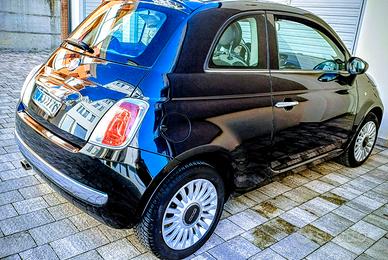 Fiat 500 Lounge 1.2, 146.500 km,colore nero benzina con tettuccio panoramico.
