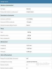 1.2 benzina di cilindrata ( 51 KW/ 69 CAVALLI) con i consumi ridotti, con un litro si percorrono 20 chilometri.