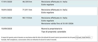 - VISURA CARFAX CHE DIMOSTRA L'ASSENZA DI INCIDENTI E CERTIFICA L'ORIGINALITÀ DEL CHILOMETRAGGIO.(VEDI IMMAGINI).