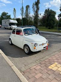 Fiat 500 F replica Abarth 595 Restaurata completamente nel 2006 Motore 650cc Cambio 4 marce non sincronizzato Albero a camme maggiorato Testa lavorata Cilindri lavorati Carburatore Weber da 40 Assetto completo Freni a disco anteriori Distanziali al posteriore Parafanghi ribattuti e allargati in lamiera SCAMBIO CON 500 ABARTH (2008-24)