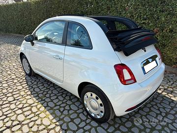 Fiat500C 1.0 Hybrid S&S Cabrio 51,5Kw 70Cv 6Marce, immatricolazione 26.05.2023, colore bianco gelato pastellcon telo cabrio nero / maniglie porte cromate / calotte specchi nere /modanature intorno vetri porte nero, Efficienza energetica Euro 6D ISC-FCM, CO2: 00106,veicolo immatricolato autovettura uso proprio 3Porte 4Posti con interno stoffagrigia con disegni in rilievo, comando Star&Stop, impianto multimedia Radio / Media / Phone / Uconnect / Audio/ Impostazioni / Trip con schermo centrale Touch-screen e comandi volante, bluetooth comandi volante e vocali, 2 porte Usb. control cruisecomandi struttura volante, vetri specchi comandi elettrici, ABS, SRC, Asr, Esc,airbag, sidebag, servosterzo con city, climatizzatore, fanali anterioriregolabili, regolazione velocità massima, pc bordo, chiusura centralizzatachiave telecomando, immobilizzatore, sedile posteriore sdoppiabile conappoggiatesta, copri bagagliaio, sistema di controllo pressione pneumatici, 51.213km.
