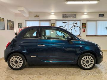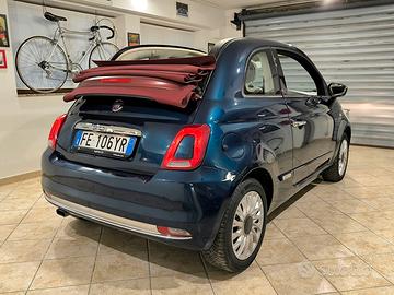 Fiat 500C 1.2 benzina 69 CV (motore 4 cilindri), nel raro abbinamento cromatico "Blu dipinto di blu" e capote Bordeaux.