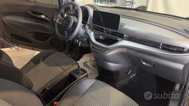 Climatizzatore automatico, Tasca retroschienale sedile passeggero, Sedili anteriori regolabile a 4 vie manuale, Console centrale con vano portaoggetti, Volante SOFT TOUCH in ecopelle nero con comandi integrati, Modalità di guida ONE-PEDAL DRIVING, Passive entry, Precondizionamento, Sacca avvolgicavo ricarica, Kit multiuso riparazione pneumatici (Fix & Go), Quadro strumenti digitale TFT da 7" a colori, Chiave Stone - indossabile, Digital Audio Broadcast (DAB), UCONNECT Box e Uconnect Services (box telematica con abilitazione ai servizi connessi), 4 Autoparlanti, Uconnect 5 Radio touchscreen 10,25" con sistema di navigazione integrata, Traffic sign information, Cerchi in lega da 16" bruniti 195/55 R16, Porta USB su console centrale, Porta USB su vano porta oggetti, Presa 12V su plancia, compatibile con Apple CarPlay e Android auto, Presa ricarica rapida 85kW, Cavo Di Ricarica Mode 3, Cavo di ricarica MODE2, Specchi Retrovisori Esterni Elettrici, Specchietti in tinta carrozzeria, Proiettori posteriori con luci LED, Fari Automatici, Fari DRL con luce LED, Lampade alogene,