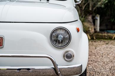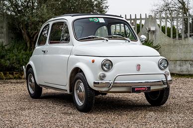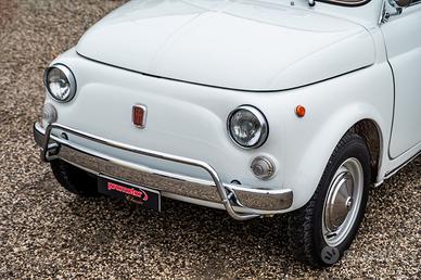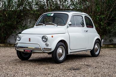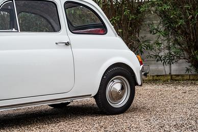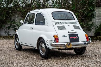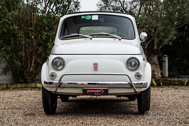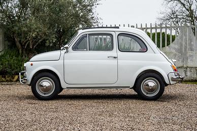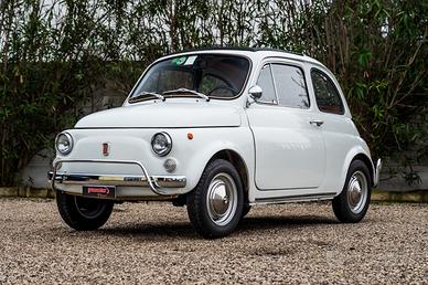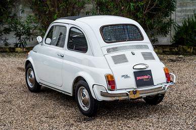 Fiat 500 L del 1970, proposta nel classico Bianco Fiat con interni rossi.