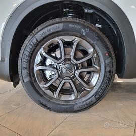 Maniglie porta, mondanatura frontale eportellone con finitura cromo lucido – Fendinebbia - Volante rivestito inmateriale Soft Touch - Fascia plancia effetto Color Satinato - Alzacristallielettrici Anteriori e Posteriori – Climatizzatore -Uconnect 7'' DAB conCarPlay/Android Auto - Comandi audio alvolante - Altoparlanti - Display multifunzionale da 3,5'' con tecnologia TFT – Cruise control con limitatore di velocità -Lane departure warning - Traffic sign recognition - Intelligent speed assist -Freno di stazionamento elettrico - Hill holder - Sistema di monitoraggiopressione pneumatici - Airbag frontale lato guida e passeggero - Airbaganteriori e posteriori a tendina - Luci targa LED