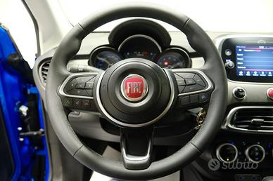 Fiat 500X 1.5 T4 Hybrid da 130 CV con cambio automatico DCT, immatricolata nel 2024, unisce il fascino del design italiano alla moderna tecnologia elettrificata, risultando una scelta eccellente anche per i neopatentati. La vettura si distingue per un abitacolo curato con interni in pelle e volante in pelle multifunzione, dove il comfort è garantito dal controllo automatico del clima e dal sistema di infotainment con touch screen, autoradio digitale, Bluetooth, USB, vivavoce e controllo vocale. La sicurezza alla guida è ai massimi livelli grazie alla frenata d'emergenza assistita, al controllo elettronico della corsia, al riconoscimento dei segnali stradali e al cruise control. Le operazioni di parcheggio sono facilitate dalla combinazione di sensori anteriori, posteriori e dalla telecamera per il parcheggio assistito. La dotazione esterna comprende fari LED, fendinebbia e cerchi in lega, mentre la gestione quotidiana è semplificata dal freno di s