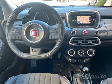 FIAT 500X 1.6 multijet 120cv allestimento LOUNGE con cambio manuale 6rapporti, schermo touch screen con radio cd mp3 con ingresso USB e AUX, Bluetooth, navigatore cartografico, climatizzatore elettronico, interni sportivi in pelle parziale di colore nero, bracciolo centrale, sedili anteriori riscaldati, volante sportivo in pelle multifunzione, cruise control, quattro alzacristalli elettrici, specchi retrovisori regolabili elettronicamente, fari Bi-XENON, cerchi in lega da 18" con gomme quattro stagioni al 80%, sensori parcheggio posteriori, vetri privacy, keyless (chiave intelligente), LANE ASSIST (sensore carreggiata).