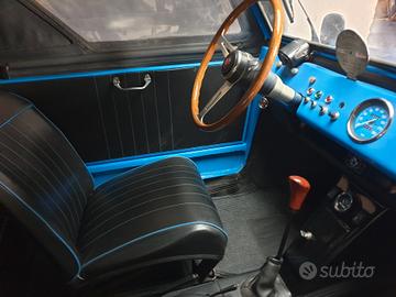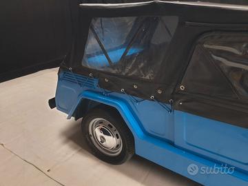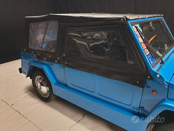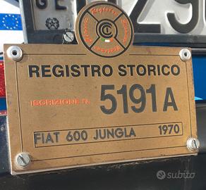 La Fiat 600 Savio Jungla Anno di fabbricazione 1970, cilindrata C.C. 600, raffreddamento a liquido con radiatore anteriore e posteriore, è una autovettura per il tempo libero, tipologia d’auto anche conosciuta come “spiaggina”, prodotta dalla Carrozzeria Savio tra gli anni sessanta e settanta. Piccola vettura scoperta a trazione posteriore, fu voluta dal Cavaliere Gianni Agnelli per contrastare la Cagiva Mini Moke e fu realizzata dalla Carrozzeria Savio. La meccanica era la stessa della Fiat 600 D mentre le ruote e le gomme 5.20×14 erano quelle della Fiat 1100. La linea era molto squadrata e si discostava notevolmente da quella delle vetture da cui aveva origine. Presentata al Salone dell’automobile di Torino nel 1965 con il nome giungla, poi modificato in jungla, la vettura poteva raggiungere una velocità massima di 95 km/h. Furono realizzate tre pre-serie: una verde chiaro (del dépliant originale) poi verniciata panna con copertura chiara; un modello grigio con copertura nera successivamente distrutto in un incidente; una tinta avorio con tetto nero (poi rifatto blu) con un baule modificato e schienale posteriore estensibile per il trasporto di merci sino a 250 kg. Quest’ultima servirà anche come base per la fornitura alle forze armate essendo stata affidata alla Cecchignola. Tra i tratti distintivi si può ricordare il parabrezza abbattibile che veniva appoggiato su due gommini fissati al cofano, la strumentazione molto scarna (composta solo dal contachilometri di origine Fiat 500 collocato a destra del volante e dalle spie di olio, riserva carburante, dinamo, abbaglianti e allarme temperatura acqua radiatore), un solo tergicristallo con motorino a vista, la ruota di scorta esterna ancorata al baule e dotata di copri bullone antifurto. Era possibile sceglierla in otto differenti colorazioni; verde (militare e salvia), rosso, arancio, giallo (scuolabus), bianco, blu, beige. Fino al 1969 questi modelli invece delle porte avevano semplici telai rivestiti in tela.