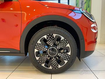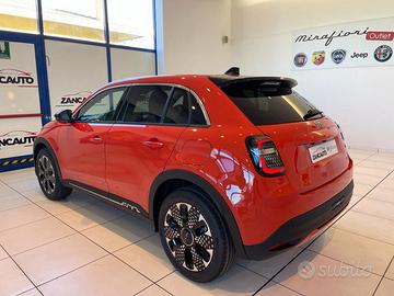 DEK:[10602017] **FIAT 600** **"600e - LA PRIMA"** **[Vettura Ufficiale FIAT Italia]** **PER ALTRI ALLESTIMENTI, MOTORIZZAZIONI O COLORI NON ESITATE A CONTATTARCI** **RITIRIAMO IL TUO USATO** **SCOPRI TUTTE LE NOSTRE AUTO SUL NOSTRO SITO WWW.ZANCAUTO.IT** ---- **Dotazioni di serie:** **Audio-Telematica** JAL Cluster digitale TFT 7.0" a colori RCG 6 Altoparlanti RDQ Radio DAB 10'' con Navigatore - USB TYPE A+C su tunnel RFX Wireless charging pad RS4 Porta USB TYPE C posteriore RTK Uconnect Services **Caratteristiche Elettriche** 17C Cavo di ricarica MODE 3 3S2 On board charger 11kW XG8 Selettore modalità di guida **Cerchi** 1M5 Cerchi in lega da 18'' 215/55 R18 **Comfort-Funzionalita'** 140 Clima automatico monozona 33S Sedile guida a 6 vie con funzione massaggio e regolazione lombare 347 Sensore pioggia 3IG Alzacristalli elettrici anteriori/posteriori 410 Specchio retrovisore interno elettrocromico (giorno/notte automatico) frameless 850 Libretto istruzioni in italiano 9Z0 Keyless Entry con proximity sensors GTD Specchietti esterni riscaldati e richiudibili con luce pozzanghera GX4 Keyless-GO JK2 Portellone ad azionamento automatico "hands free" XC4 Freno di stazionamento elettrico **GHOST** 7Q4 INSERTI SPECIFICI 13 **Linea e Stile Esterni** 33G Montante Glossy black 3U1 Indicatore di direzione con luci di posizione anteriori a LED 5IF Dettagli carrozzeria cromati 88Q Calotte specchi nere B2B Tunnel Pad Cover La Prima GEG Vetri privacy LAY Fari posteriori LED LNT Fari fendinebbia LED con funzione cornering LPX Proiettori FULL LED **Linea e Stile Interni** 0YB Tappetini in velluto 132 Smart central tunnel con bracciolo centrale anteriore 182 Poggiatesta posteriori 318 Volante premium con comandi radio 452 Sedili anteriori riscaldati 511 Terzo