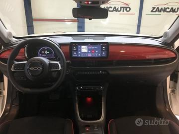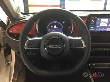 DEK:[10873005] **FIAT 600** **"600e - RED"** **[Vettura KM0 Ufficiale FIAT Italia]** **PER ALTRI ALLESTIMENTI, MOTORIZZAZIONI O COLORI NON ESITATE A CONTATTARCI** **RITIRIAMO IL TUO USATO** **SCOPRI TUTTE LE NOSTRE AUTO SUL NOSTRO SITO WWW.ZANCAUTO.IT** ---- **Dotazioni di serie:** **Audio-Telematica** JAL Cluster digitale TFT 7.0" a colori RCD 4 Altoparlanti RDP Radio DAB 10'' - USB TYPE A+C su tunnel RTK Uconnect Services **Caratteristiche Elettriche** 17C Cavo di ricarica MODE 3 3S2 On board charger 11kW XG8 Selettore modalità di guida **Cerchi** 1MW Cerchi in acciaio da 16'' 215/65 R16 **Comfort-Funzionalita'** 140 Clima automatico monozona 347 Sensore pioggia 3IG Alzacristalli elettrici anteriori/posteriori 416 Cruise control 508 Sensori di parcheggio posteriore 850 Libretto istruzioni in italiano GNA Specchietto retrovisore con funzione giorno/notte manuale GT8 Specchietti esterni elettrici GX4 Keyless-GO JTM Sedile guida regolabile 6 vie sedile passeggero regolabile 4 vie XC4 Freno di stazionamento elettrico **GHOST** 52W RED VERSION KIT 7Q4 INSERTI SPECIFICI 13 **Linea e Stile Esterni** 33G Montante Glossy black 3U1 Indicatore di direzione con luci di posizione anteriori a LED 88Q Calotte specchi nere B29 Tunnel Pad Cover RED LAY Fari posteriori LED LNT Fari fendinebbia LED con funzione cornering LPX Proiettori FULL LED **Linea e Stile Interni** 132 Smart central tunnel con bracciolo centrale anteriore 182 Poggiatesta posteriori 318 Volante premium con comandi radio 511 Terzo appoggiatesta posteriore 5KY Sedili in tessuto reciclato 5MT Maniglie interne porte cromate CFN Sedili posteriori reclinabili e sdoppiati 60:40 CSM Tasche retroschienale anteriore, conducente/passeggero LHA Color Therapy, illuminazione ambiente interno con colore