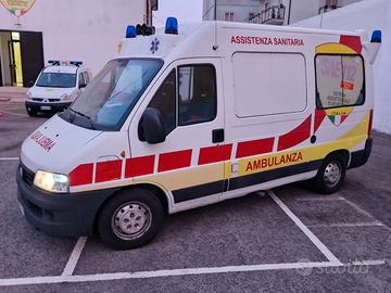 AMBULANZA FIAT DUCATO ANNO 2005. DOPPIO TRENO DI GOMME E FRENI NUOVI . Il mezzo è perfettamente marciante, pronto all'uso, lo stato è ottimo, revisionata e tagliandata. Dotazione barella autocaricante e sedia cardiopatica.