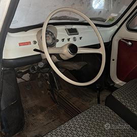 Fiat 500 - 1970. Auto di mio nonno, poi di mio padre ed infine mia sempre funzionante e usata in percorsi cittadini. Ferma dall'inizio del COVID. Ricoverata sempre in autorimessa. Mai modificata tutto originale da quando l'ha acquistata nuova mio nonno (eccetto i ricambi di usura). E' stato fatto nei primo anni '90 un trattamento di protezione nella parte inferiore, nel fondo del telaio per prevenire la ruggine punto delicato di queste auto. C'è qualche piccolo segno di ruggine che affiora.
