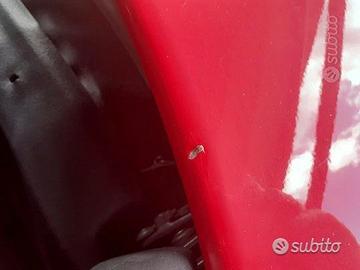 Carrozzeria di colore rosso complessivamente in buono stato, presenta solo un piccolo segno (in foto) dietro al sedile di guida